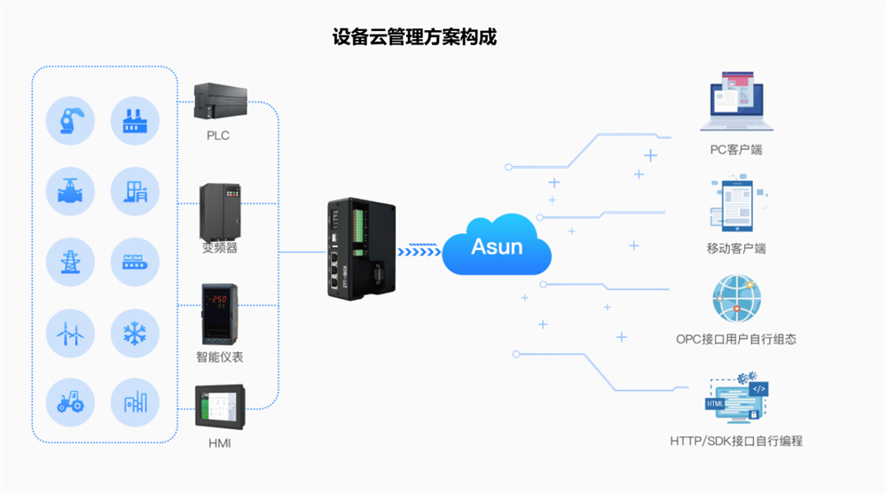 設(shè)備云平臺可接入各種工業(yè)設(shè)備,提供實時的設(shè)備狀態(tài)監(jiān)控、數(shù)據(jù)采集、存儲、設(shè)備管理、遠程維護等功能, 從而實現(xiàn)設(shè)備管理的自動化、智能化。基于不同行業(yè)的設(shè)備管理的不同之處,為達到的用戶體驗,我們采用基于標(biāo)準(zhǔn)化產(chǎn)品+個性化定制的快速實施交付的項目模式,滿足不同客戶需求。
